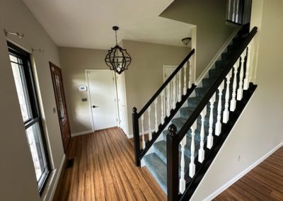 We stripped 20-year-old wallpaper off the walls, painted the walls,ceiling, and trim, and even gave the entrance door a “face-lift” as well!